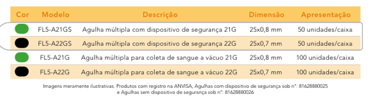• Agulhas com dispositivo de segurança: câmara de visualização do fluxo sanguíneo