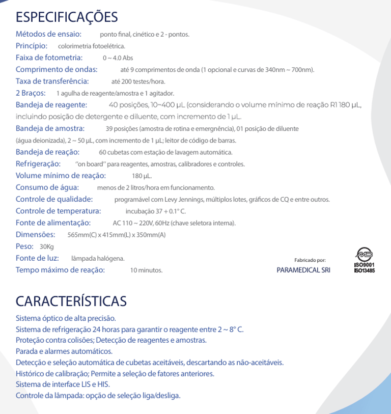 ANALISADOR AUTOMÁTICO DE BIOQUÍMICA E TURBIDIMETRIA PKL -125