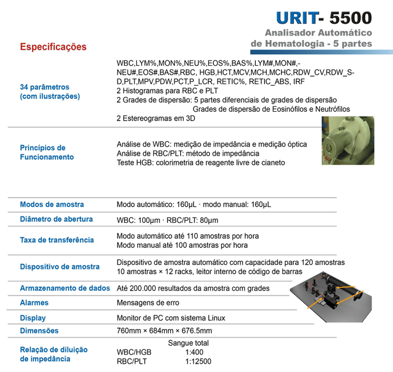 ANALISADOR AUTOMÁTICO DE HEMATOLÓGIA -5 PARTES URIT 5500