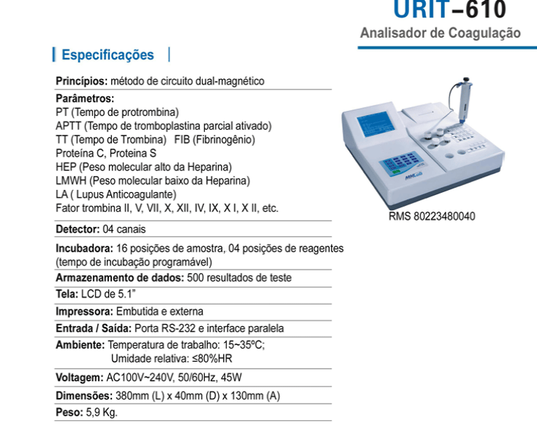 ANALISADOR DE COAGULAÇÃO URIT 610