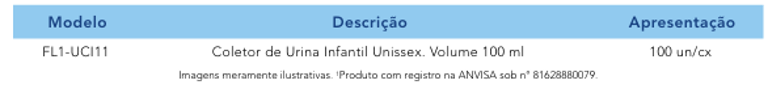 O Coletor de Urina Infantil Unissex é utilizado para coleta de urina de crianças ou bebês.