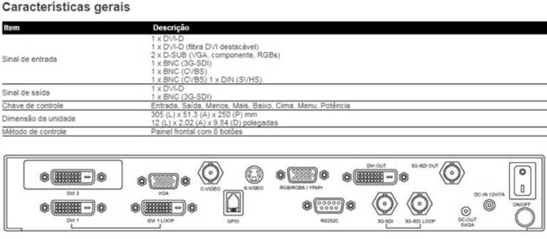 Saída: 1 DVI, 1 3G-SDI
