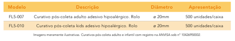 Recomendados para hemostasia após a realização de punções venosas e em casos de feridas superficiais. Os curativos pós-coleta possuem propriedades hipoalergênicas e são indicados para uso médico ou doméstico.
