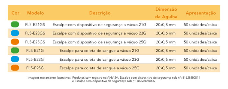 • Medidas da cânula: modelos com dispositivo: 20x0,24 cm e modelos sem dispositivo: 18x0,20 cm