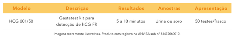 Teste imunocromatográfico para detecção dos hormônios Gonadatrofina Coriônica Humana (hCG). A Gonadatrofina Coriônica humana (hCG) é um hormônio glicoproteico secretado a partir do desenvolvimento da placenta logo após a fertilização. Na gravidez normal, o hCG pode ser detectado no soro a partir do 7° dia seguinte à concepção, duplicando sua concentração aproximadamente a cada 2 dias.