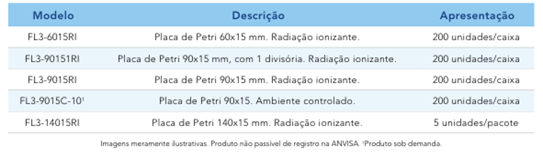 Utilizadas para crescimento e identificação de microrganismos, documentação de colônias, rotinas de bacteriologia, entre outros.